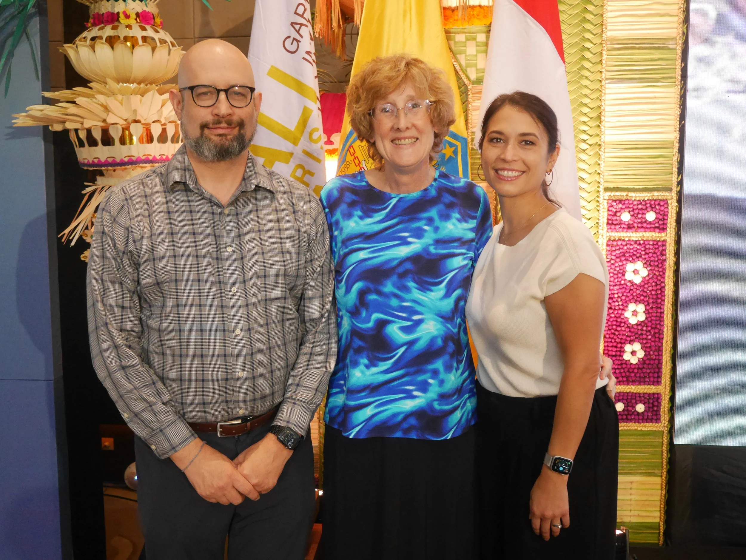 The Foundation supports education and leadership development by providing travel scholarships for medical regulators and health professionals. In 2023, the Foundation provided scholarships for attendance at the global conference of the International Association of Medical Regulatory Authorities (IAMRA) in Bali, Indonesia. Recipients in this photo are Christopher Palazola, JD, left, the Chief Operating Officer of the Texas Medical Board, and Nicole Krishnaswami, JD, right, Executive Director of the Oregon Medical Board. Ms. Krishnaswami was elected Chair-Elect of IAMRA during the conference, becoming the first IAMRA Chair-Elect from a U.S. state medical board. Standing at center is FSMB Foundation President Janelle A. Rhyne, MD, MACP.